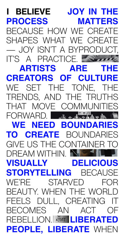 “I create experiences that make people feel — joy, connection, possibility. Whether it’s through a large-scale spectacle, a community celebration, or a conversation that opens hearts, I believe in the power of art to transform.”